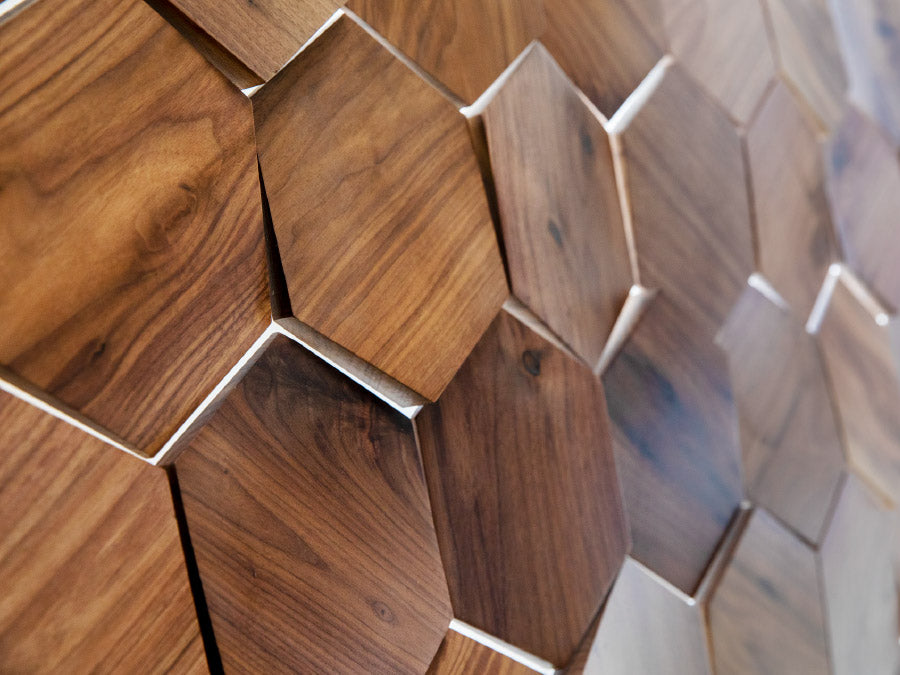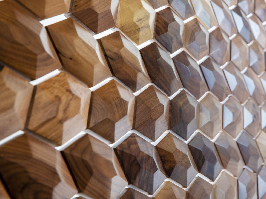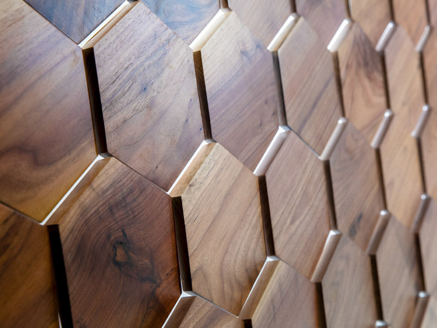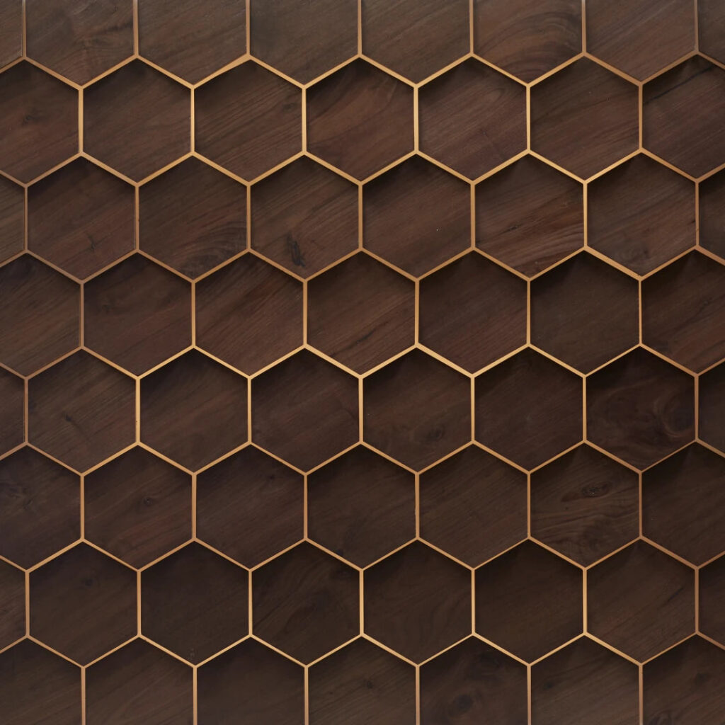 The hexagon honeycomb pattern is one of the strongest and most efficient structures found in nature, as well as intrinsically beautiful. The angled shapes create pleasing shadows across the surface pattern. Joined and finished by hand and designed in Southern California.Â