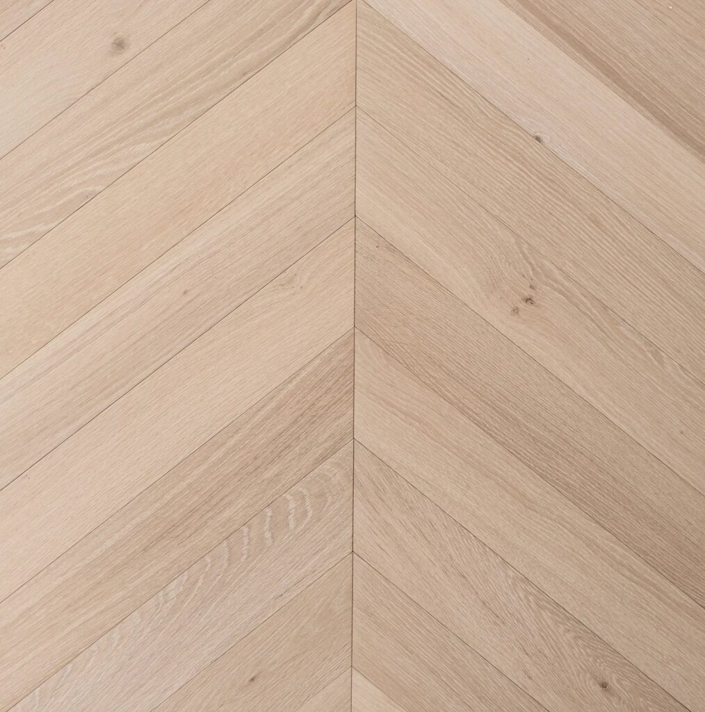 Pale natural raw shades. DUCHATEAU joins with world renowned interior designer MARTYN LAWRENCE BULLARD to create a hardwood flooring collection inspired by modern and classical architects. Impeccable finishes, rooted in design tradition, reinvented for today. European white oak 9.5″ (240 mm) wide plank. Offered in a coordinating chevron. For Chevron Specifications: Click Here