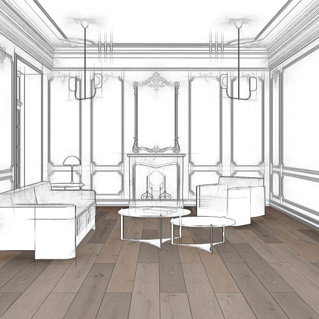 Light tones desaturated with a subtle greige sheen. DUCHATEAU joins with world renowned interior designer MARTYN LAWRENCE BULLARD to create a hardwood flooring collection inspired by modern and classical architects. Impeccable finishes, rooted in design tradition, reinvented for today. European white oak 9.5″ (240 mm) wide plank. For Chevron Specifications: Click Here
