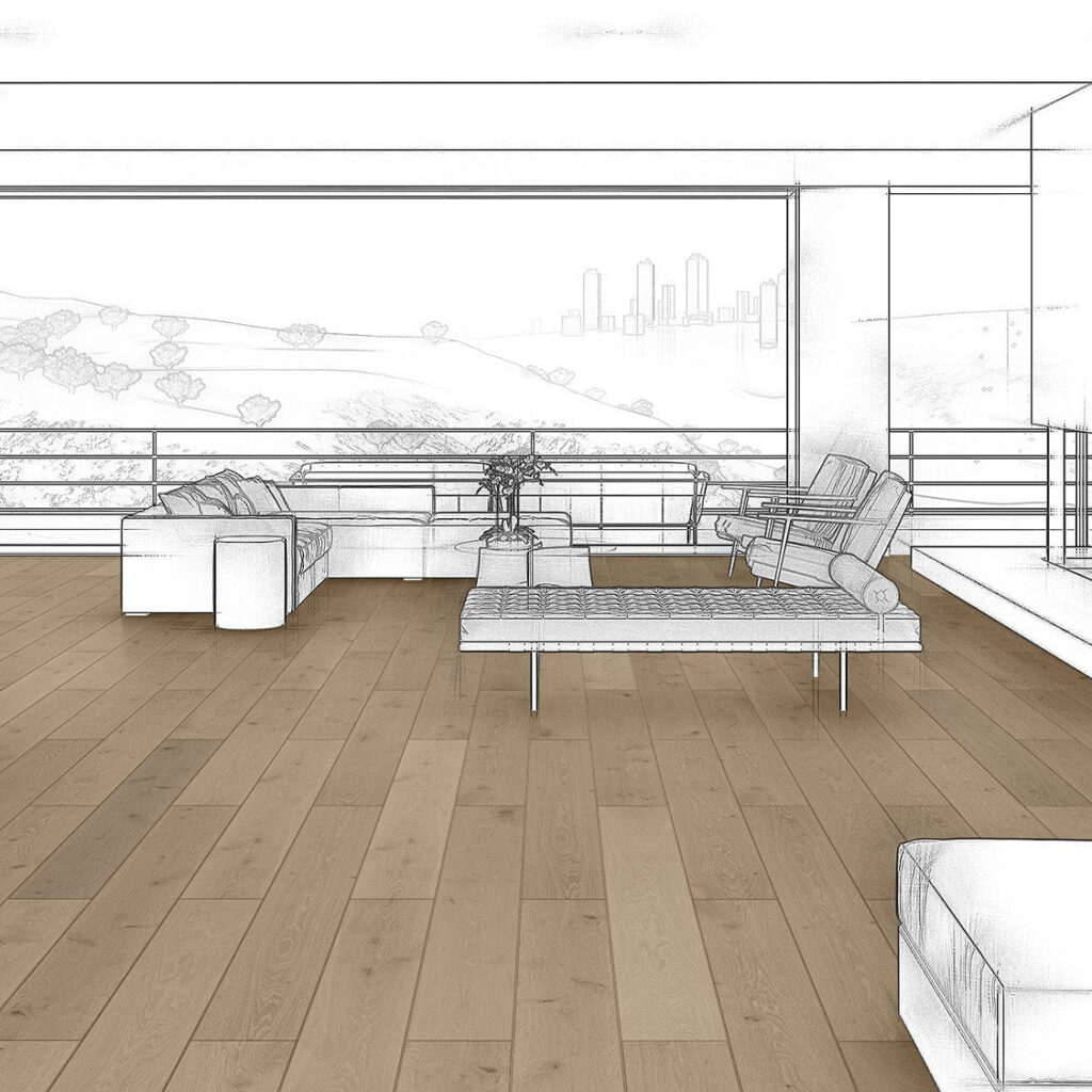 Blond to mid-tan tones. DUCHATEAU joins with world renowned interior designer MARTYN LAWRENCE BULLARD to create a hardwood flooring collection inspired by modern and classical architects. Impeccable finishes, rooted in design tradition, reinvented for today. European white oak 9.5″ (240 mm) wide plank. For Chevron Specifications: Click Here