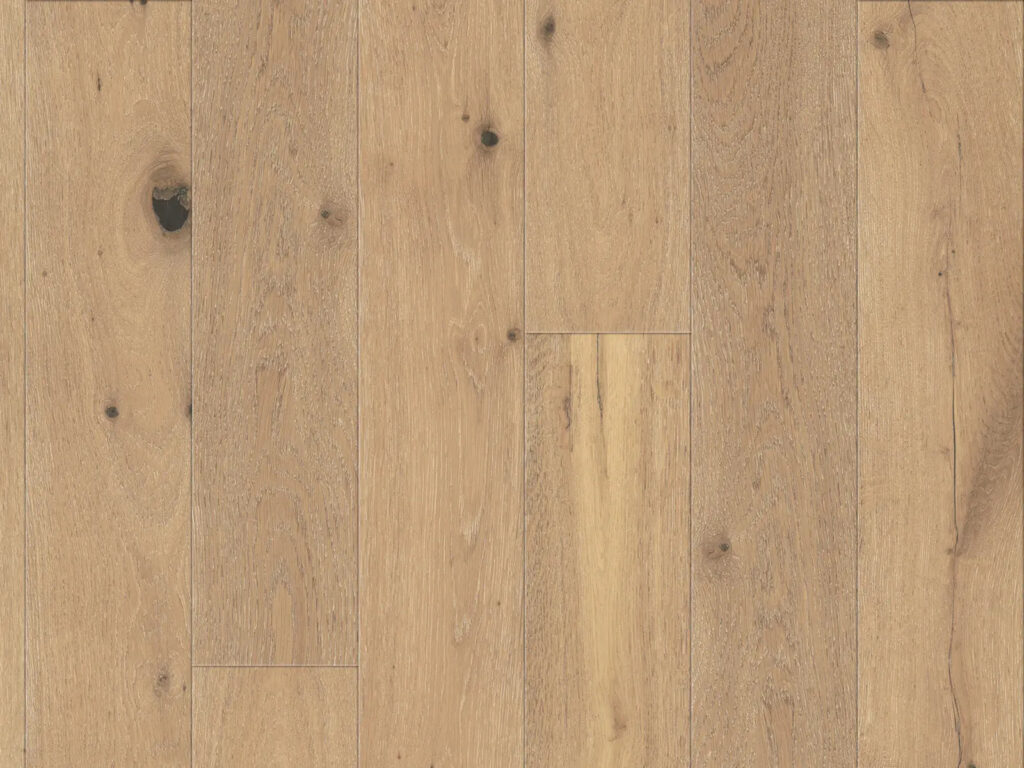 A warm, golden wire-brushed surface with an accentuated grain visual. A layered depth whose character ages beautifully with time. The Riverstone Collection is inspired by the textures of softly tumbled rocks you’ll find at the river’s edge. Natural distressing and raised knots are signature of this organic look. Plank Specs: Click Here
