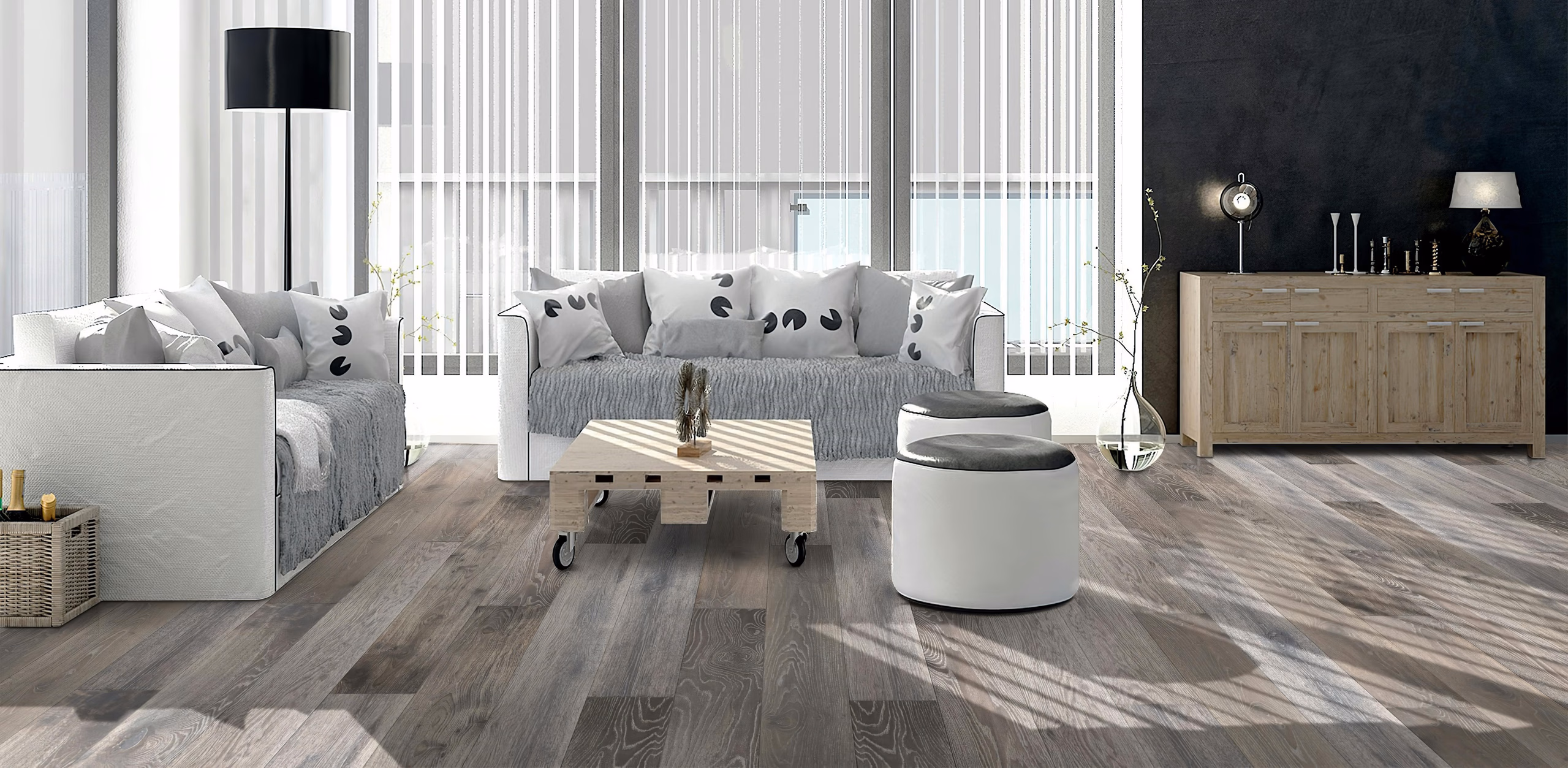 Take the cool taupe and creamy white tones of Lugano, add the natural character of knots and minor splits, throw in subtle scraping to give a time-worn feel and you have Danube. The Riverstone Collection is inspired by the textures of softly tumbled rocks that you find at the river’s edge. Natural distressing and raised knots create an organic look and rustic feel that is at home in almost any setting.